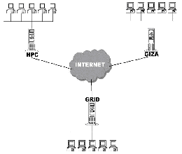 GRID (9 SMP working nodes, 18 working CPU on a Beowulf architecture)