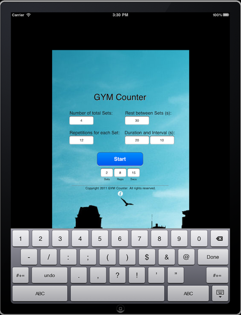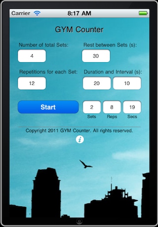 Enjoy GYM Counter by pressing the button ‘Start’: